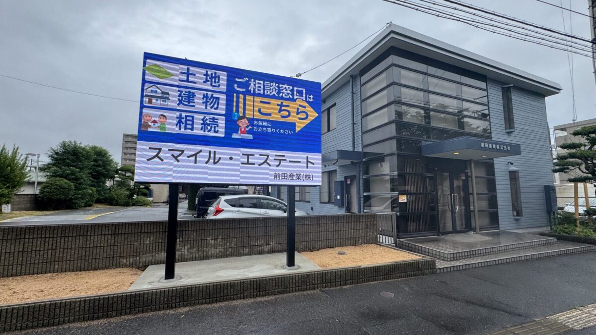 琴芝駅すぐ近く、寿橋通りのコンビニ前に立地。生活道路で終日車通りがある好立地ビジョン