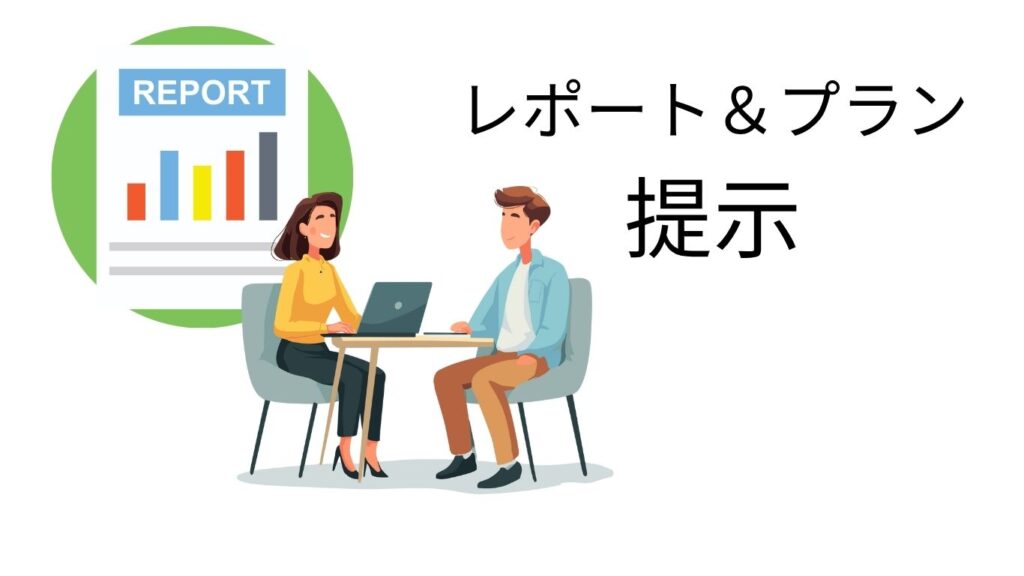 面談時に、回答内容と簡易調査をもとに集客or採用の現状可視化シートとアクションプランを提示いたします。「まずはこれをすると課題が解消していく」という具体的な施策案をお伝えします。