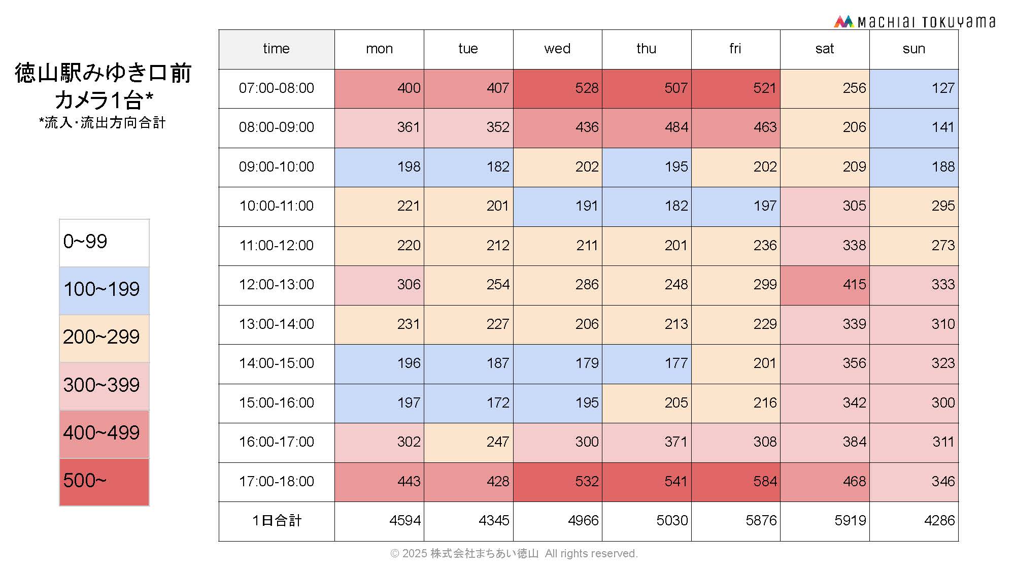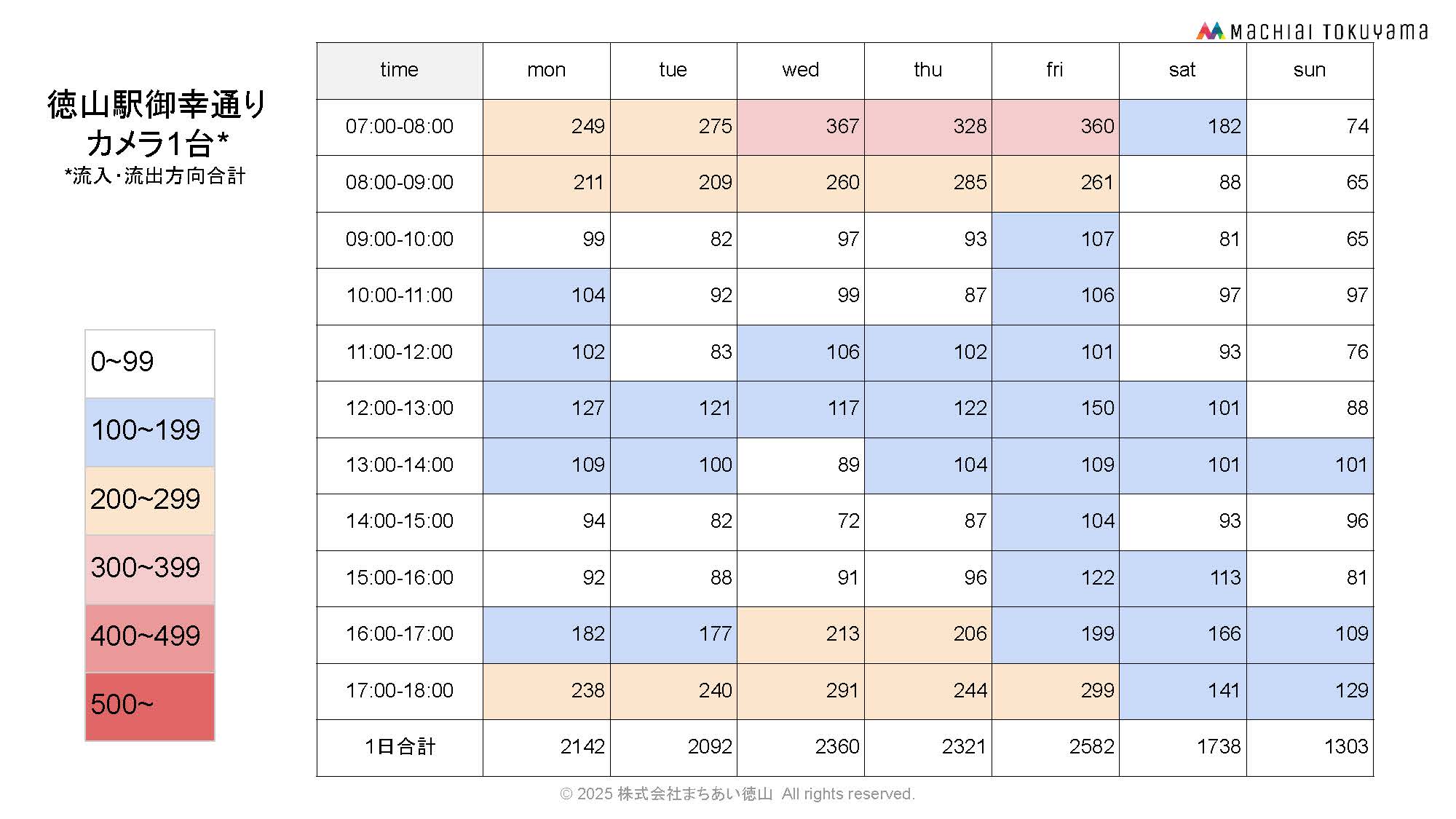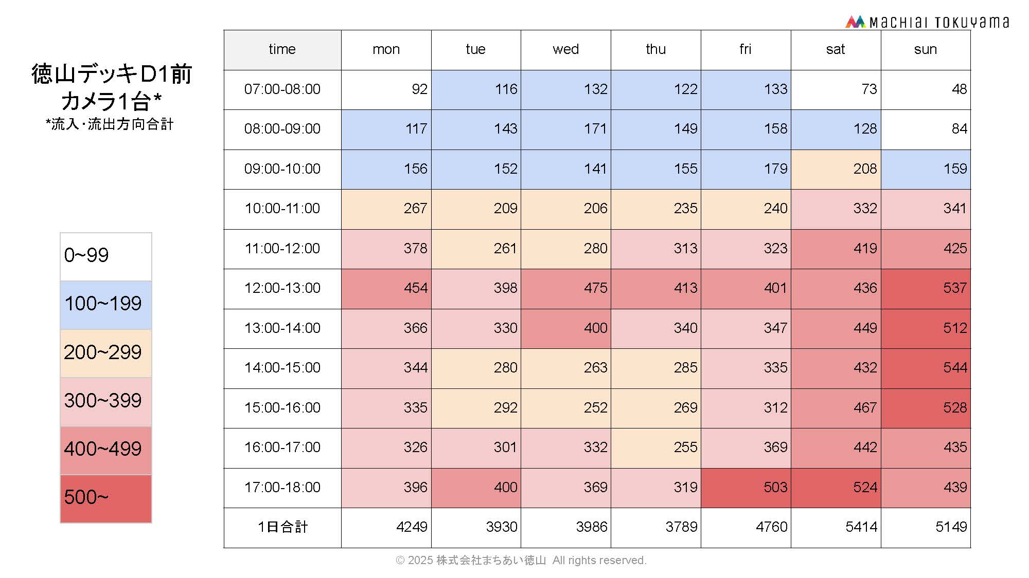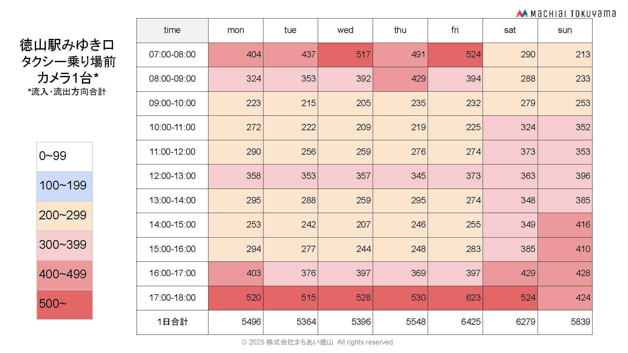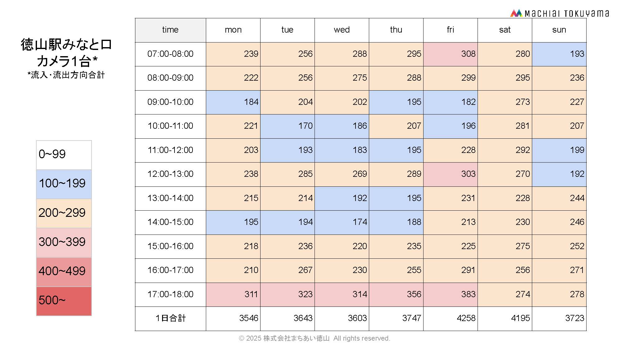 徳山駅から中心市街地へ流入人流(カメラ11台合計)