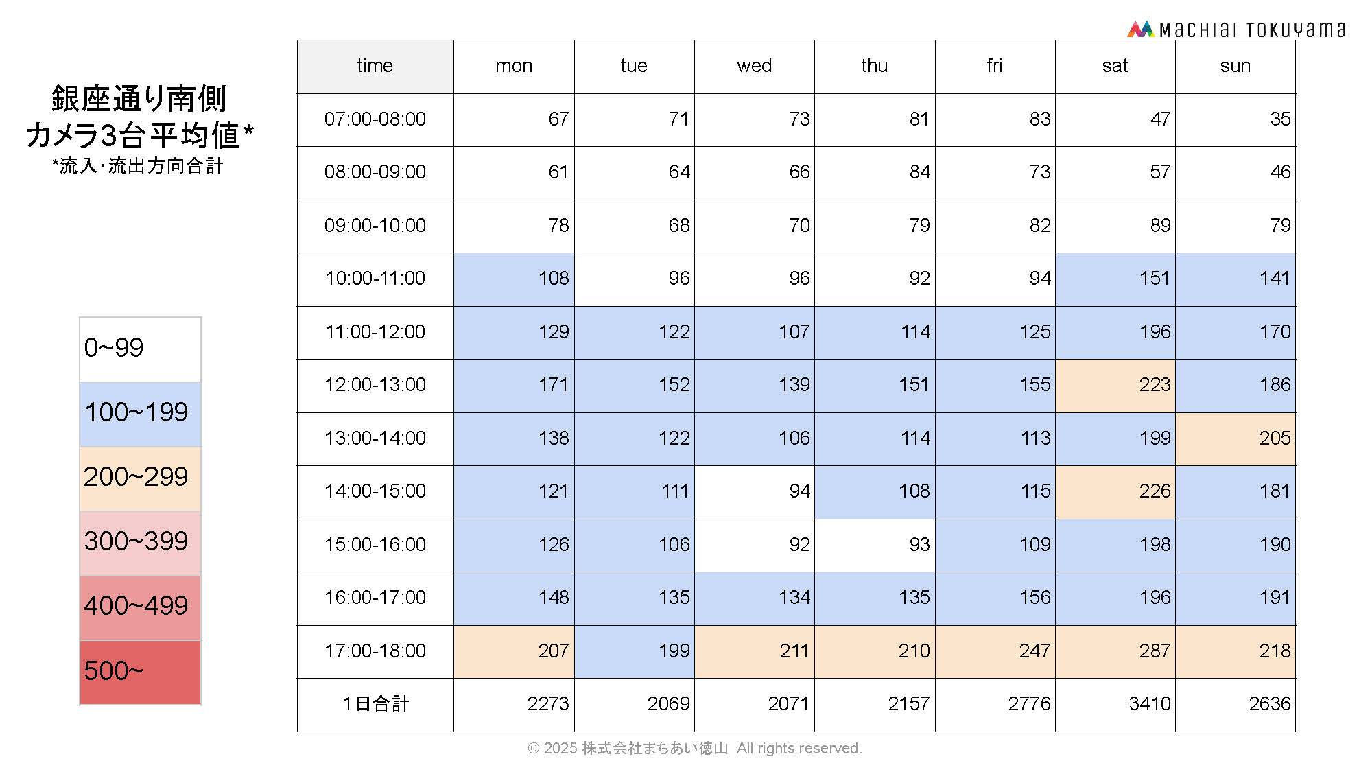 銀座通り北側3台のカメラ平均値